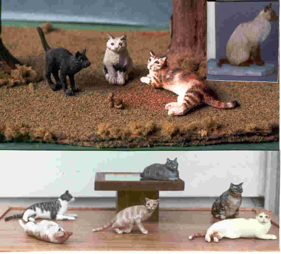 Below, hand carved custom dollhouse 1:24th scale animals.